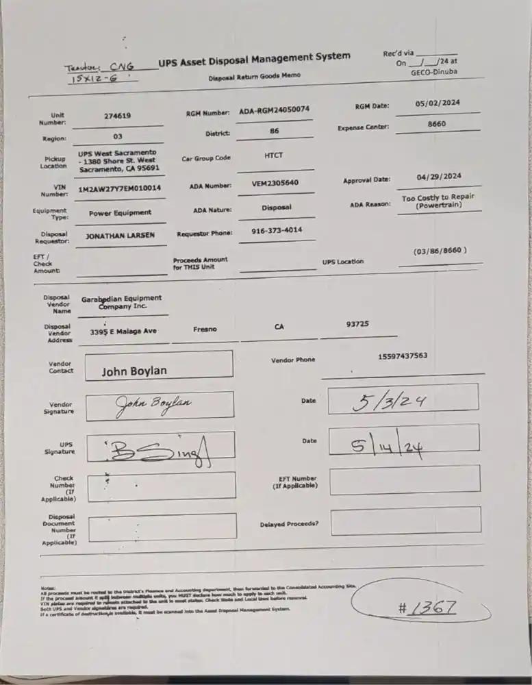 Vehicle Tracking Number:UPS-274619