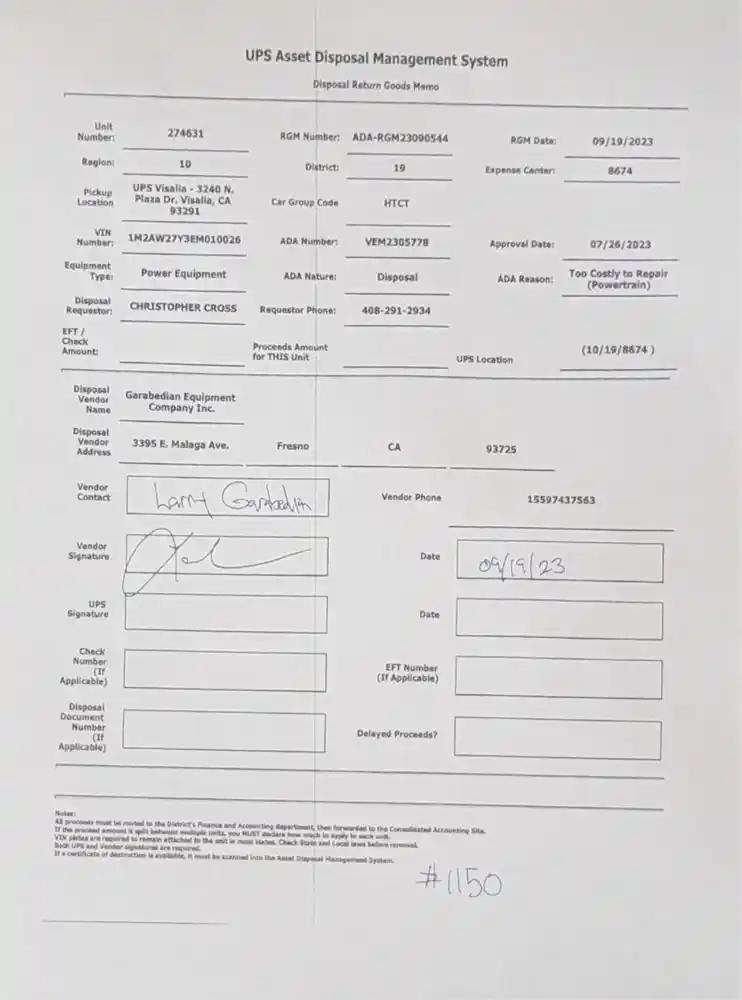 Vehicle Tracking Number:UPS-274631