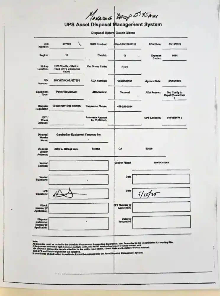Vehicle Tracking Number:UPS-277190