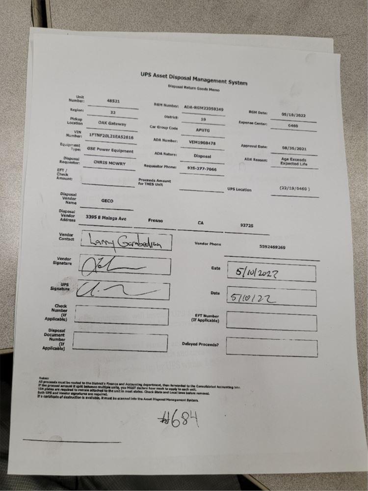 Vehicle Tracking Number:UPS-48521