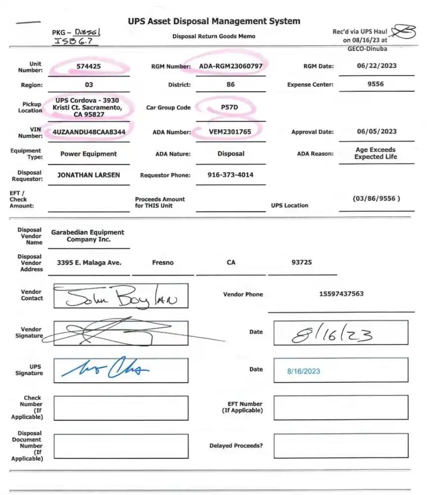 Vehicle Tracking Number:UPS-574425