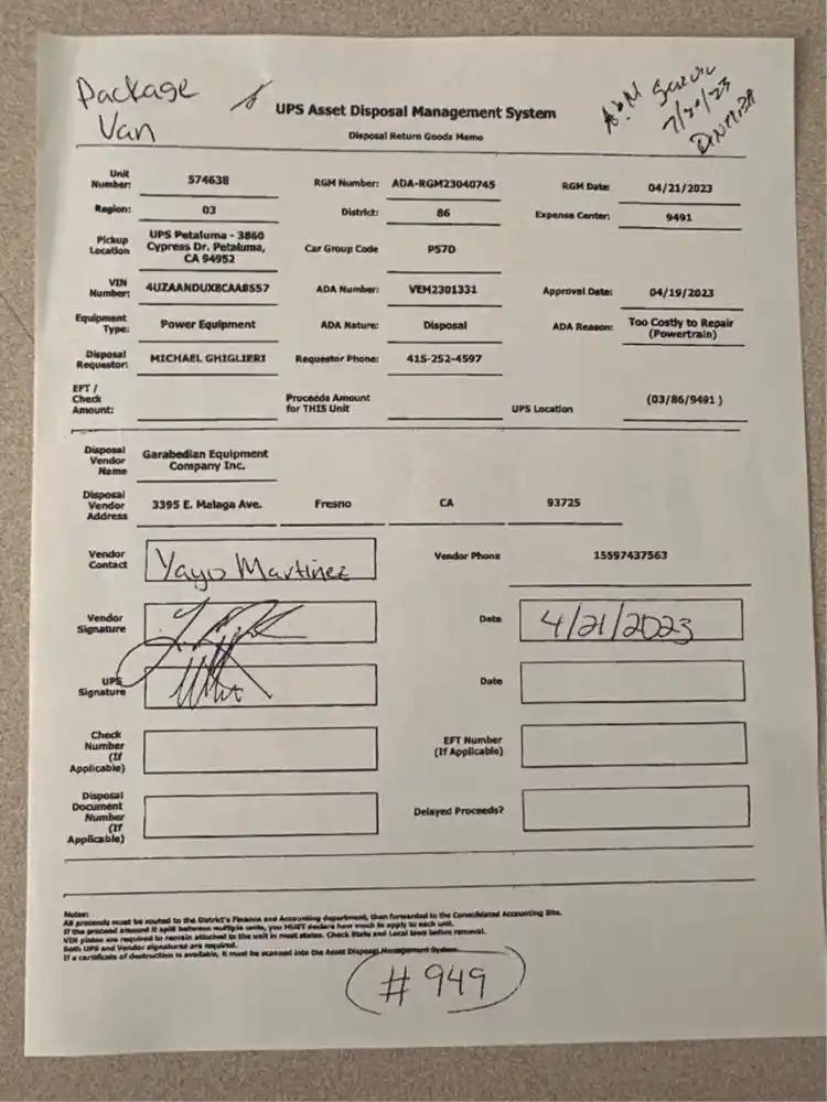 Vehicle Tracking Number:UPS-574638
