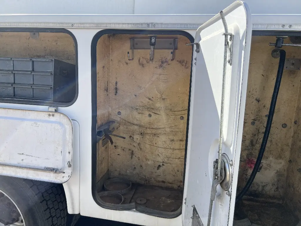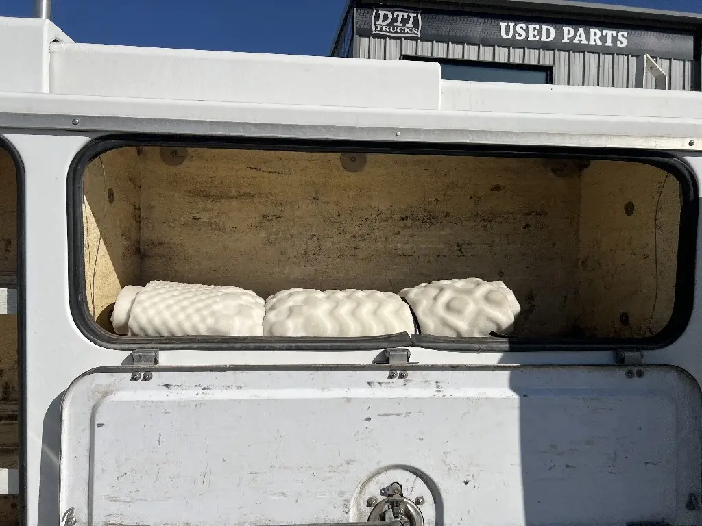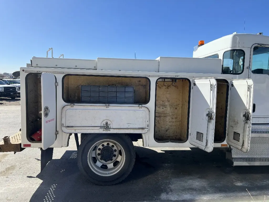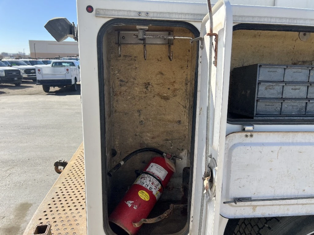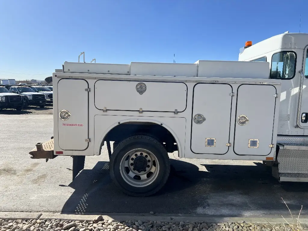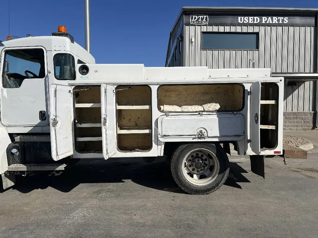 11'L 95"W 48"T Brandfx Service body, Made From Fiber glass, 8 compartments, Slide locking tonneau cover, 84’”Cab to axle fitment. Vented storage compartment, Lube storage Tank. Call DTI Trucks for more information and a shipping quote.