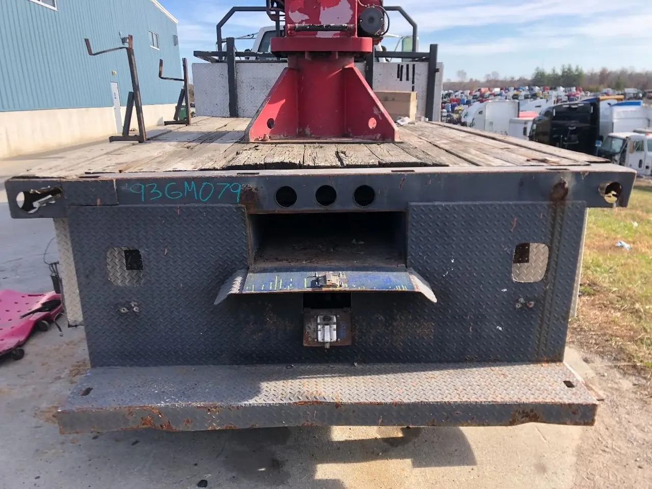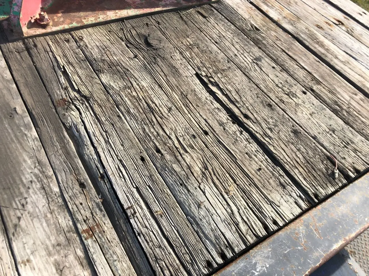 USED: USED 12'x96.25" FLAT BED, WOOD FLOOR. FLOOR HAS SPOTS THAT ARE CHIPPING / CHUNKS OUT OF THE WOOD.