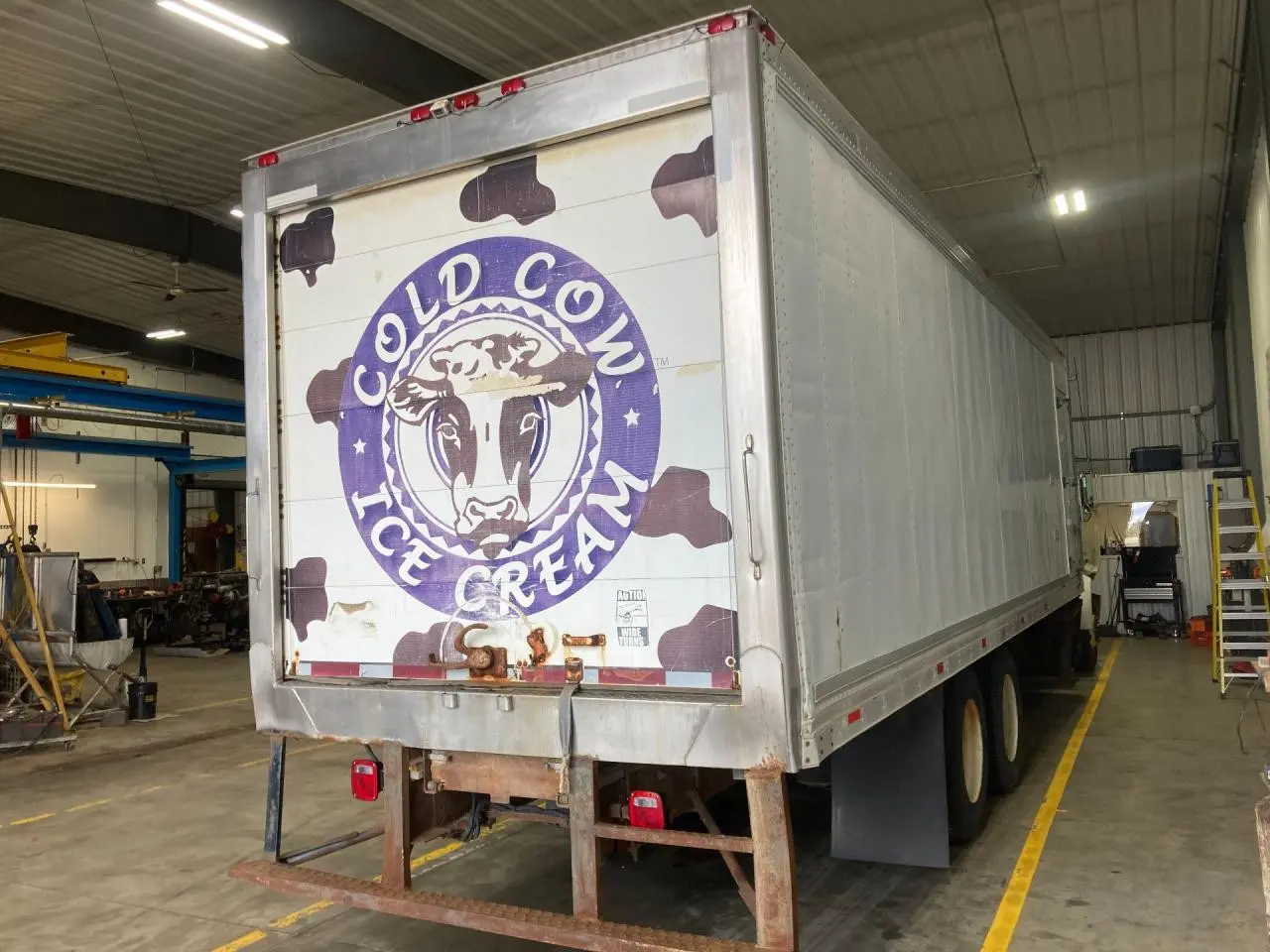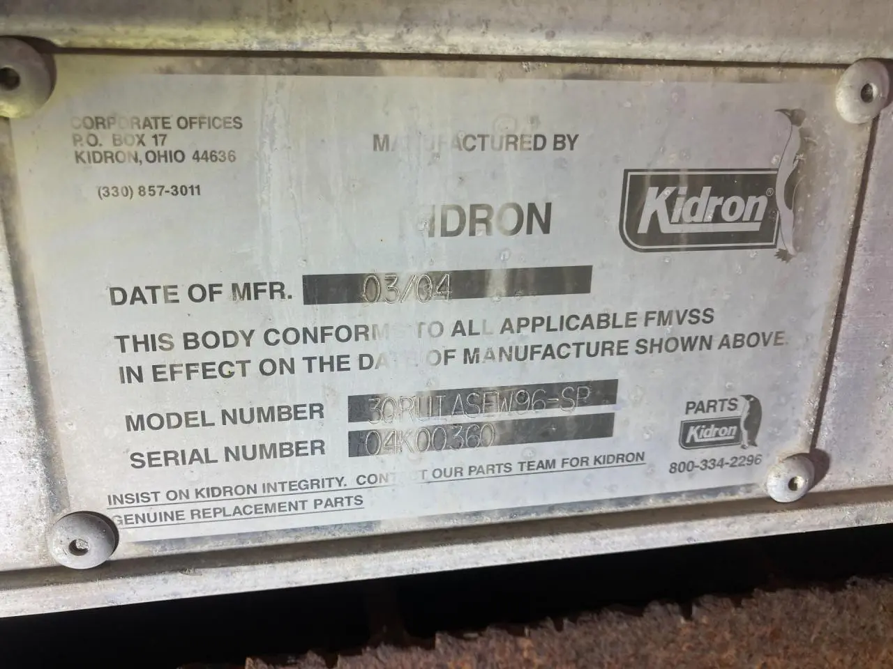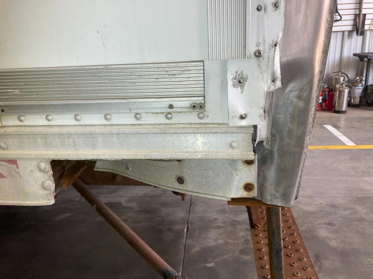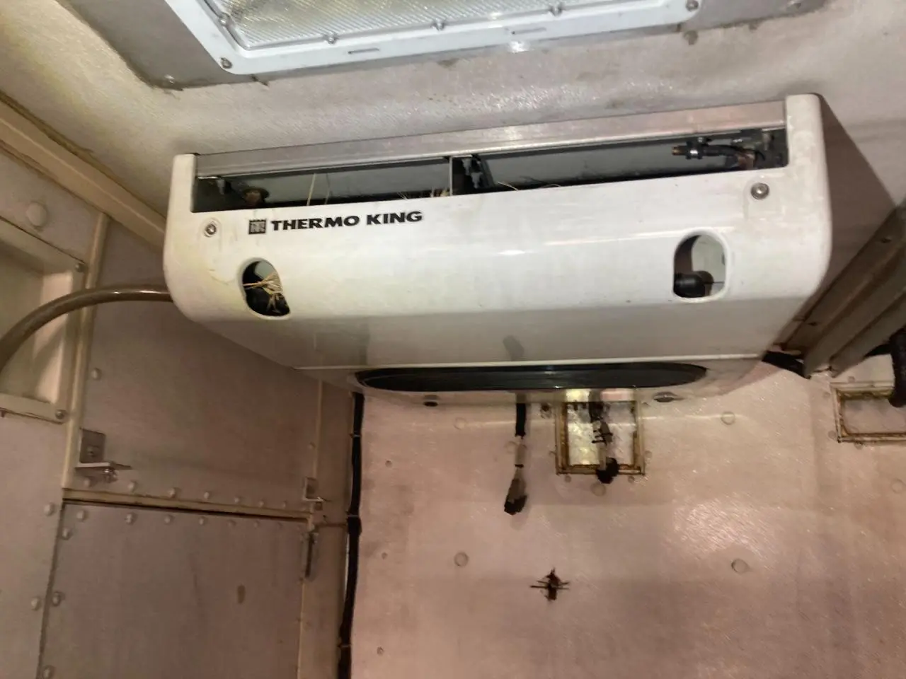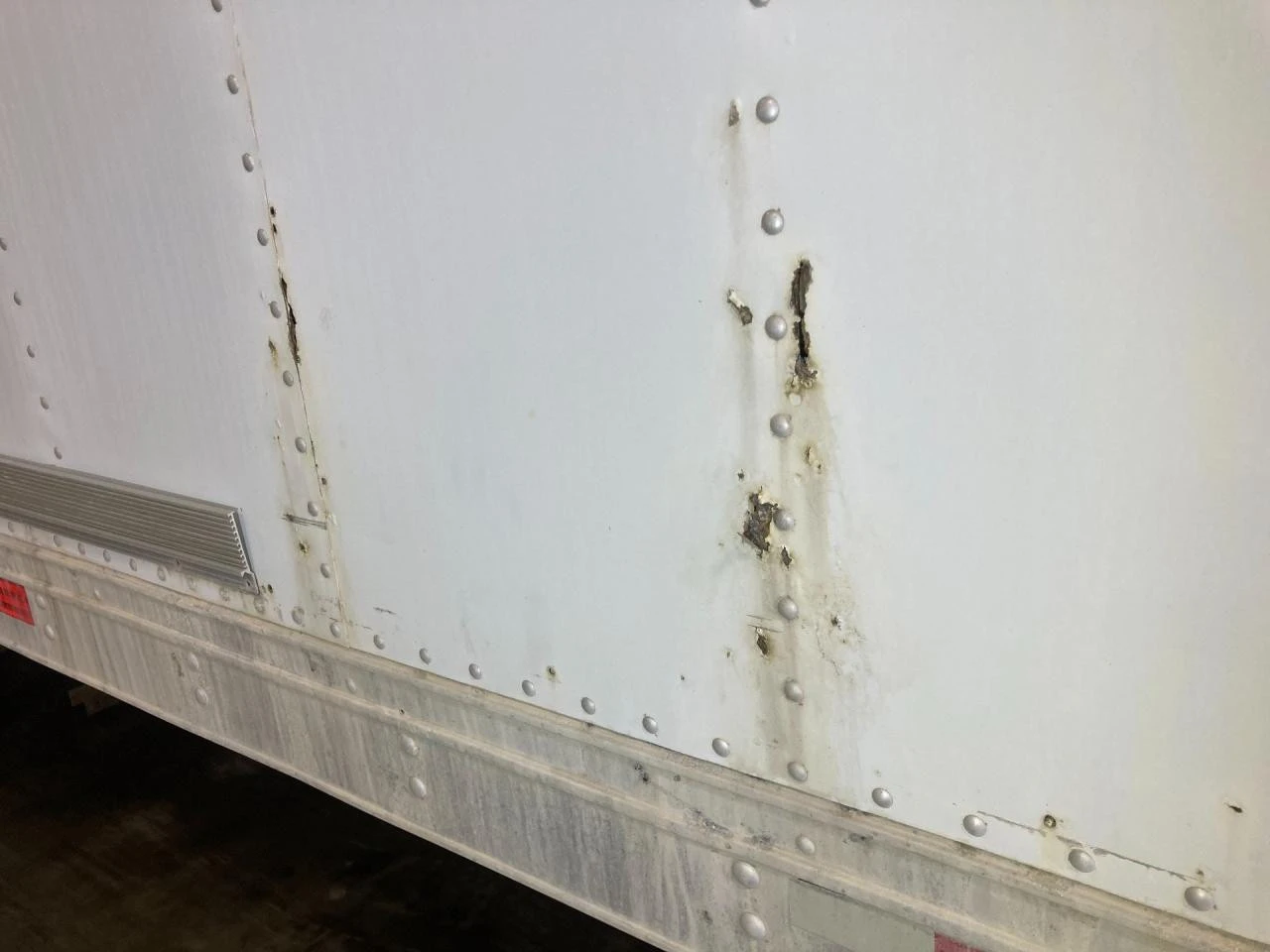 USED: USED CURBSIDE DOORS ON BOTH SIDES, INSIDE REEFERS NO POWER GOING TO THEM, SMALL HOLES ALONG THE BOTTOM OF LH SIDE, LH LOWER SIDE TRIM BROKEN OFF IN MIDDLE, BOTTOM IS RUSTY SOME OF RUNNERS ARE COMING OFF