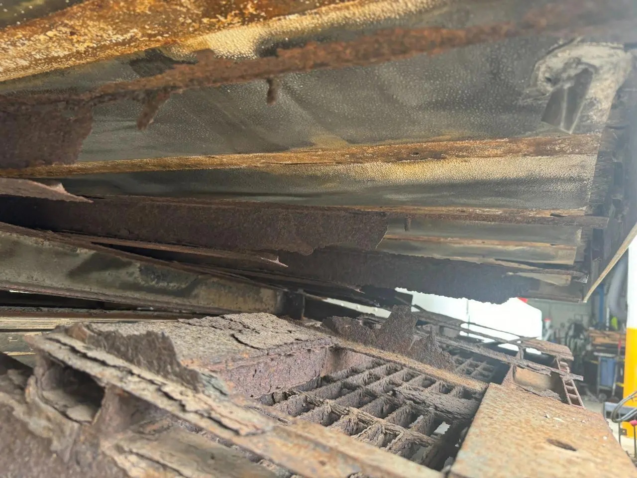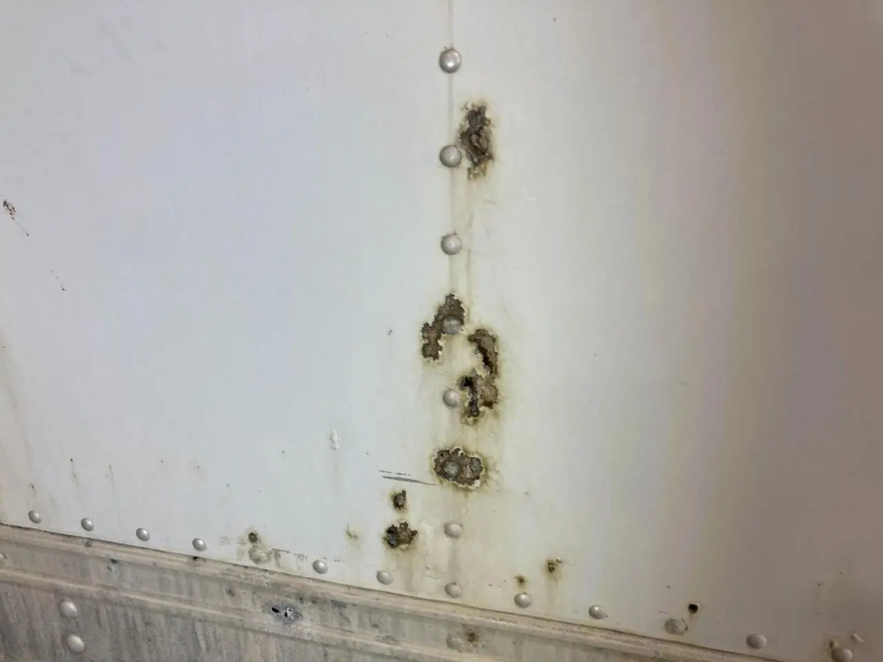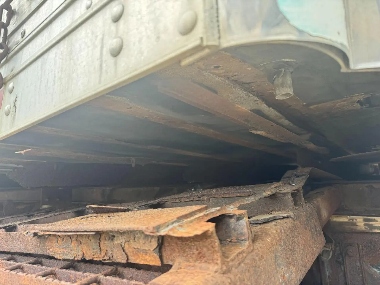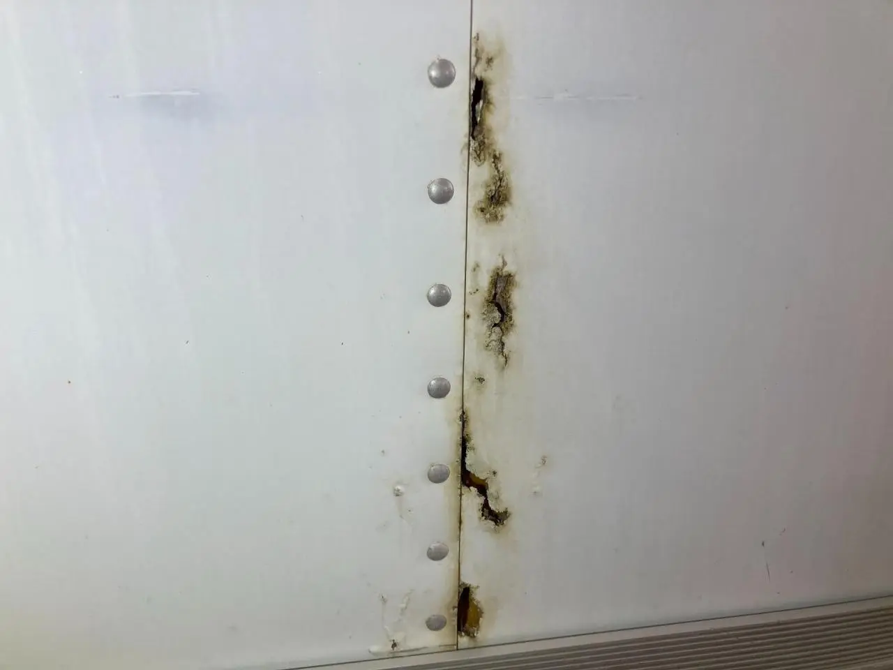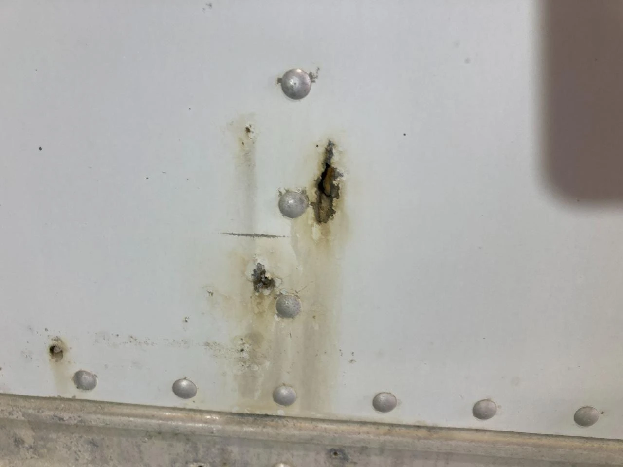 USED: USED CURBSIDE DOORS ON BOTH SIDES, INSIDE REEFERS NO POWER GOING TO THEM, SMALL HOLES ALONG THE BOTTOM OF LH SIDE, LH LOWER SIDE TRIM BROKEN OFF IN MIDDLE, BOTTOM IS RUSTY SOME OF RUNNERS ARE COMING OFF