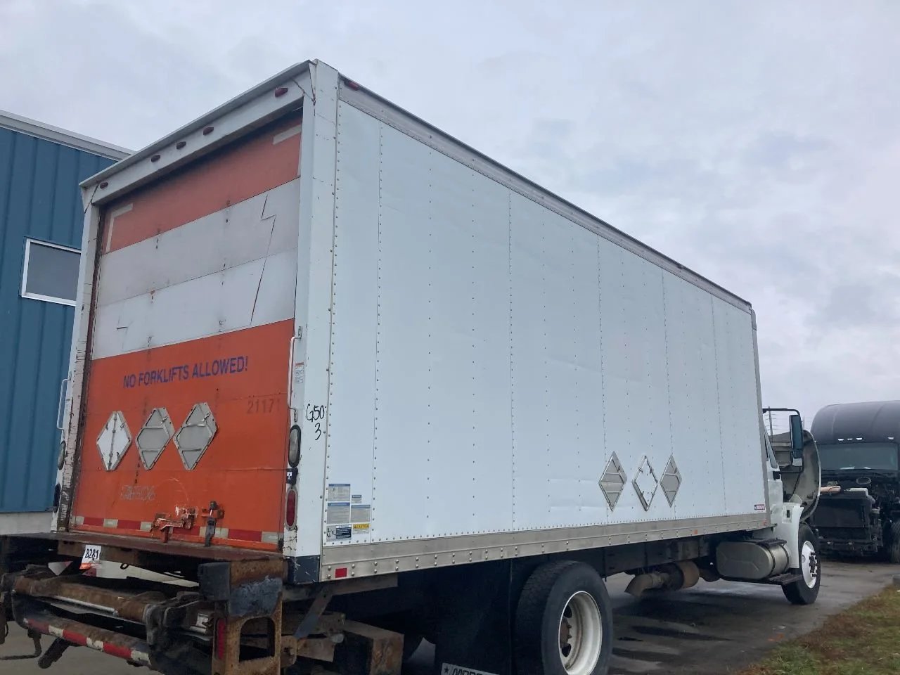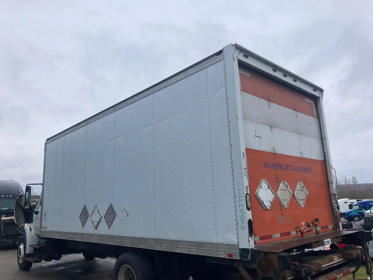 USED: USED SMALL DENTS ON EXTERIOR, ROLL UP DOOR HAS SOME CRACKING ON PANELS. UNKOWN CONDITION AND OPERABILITY OF LIFTGATE.