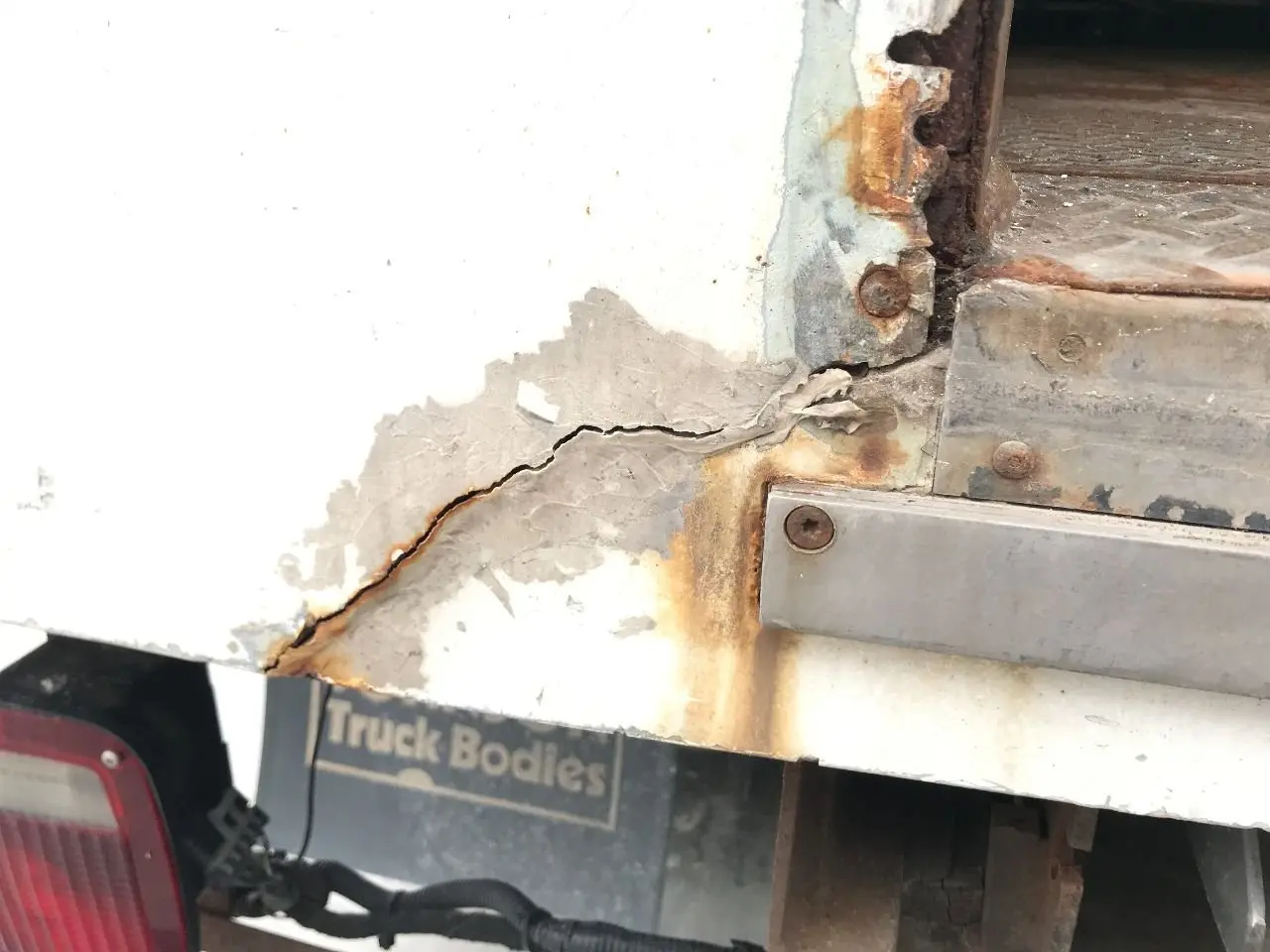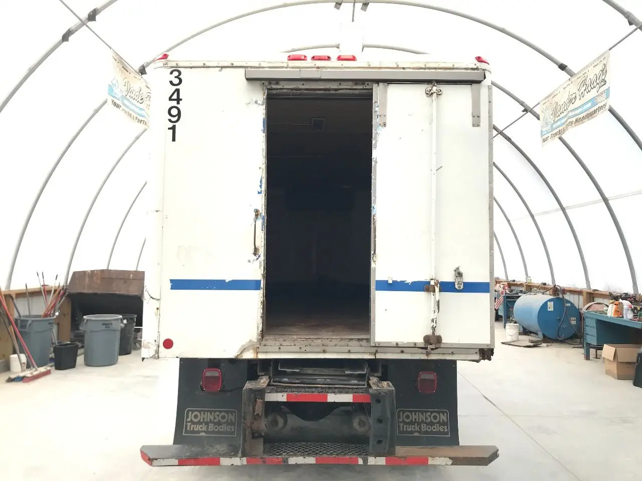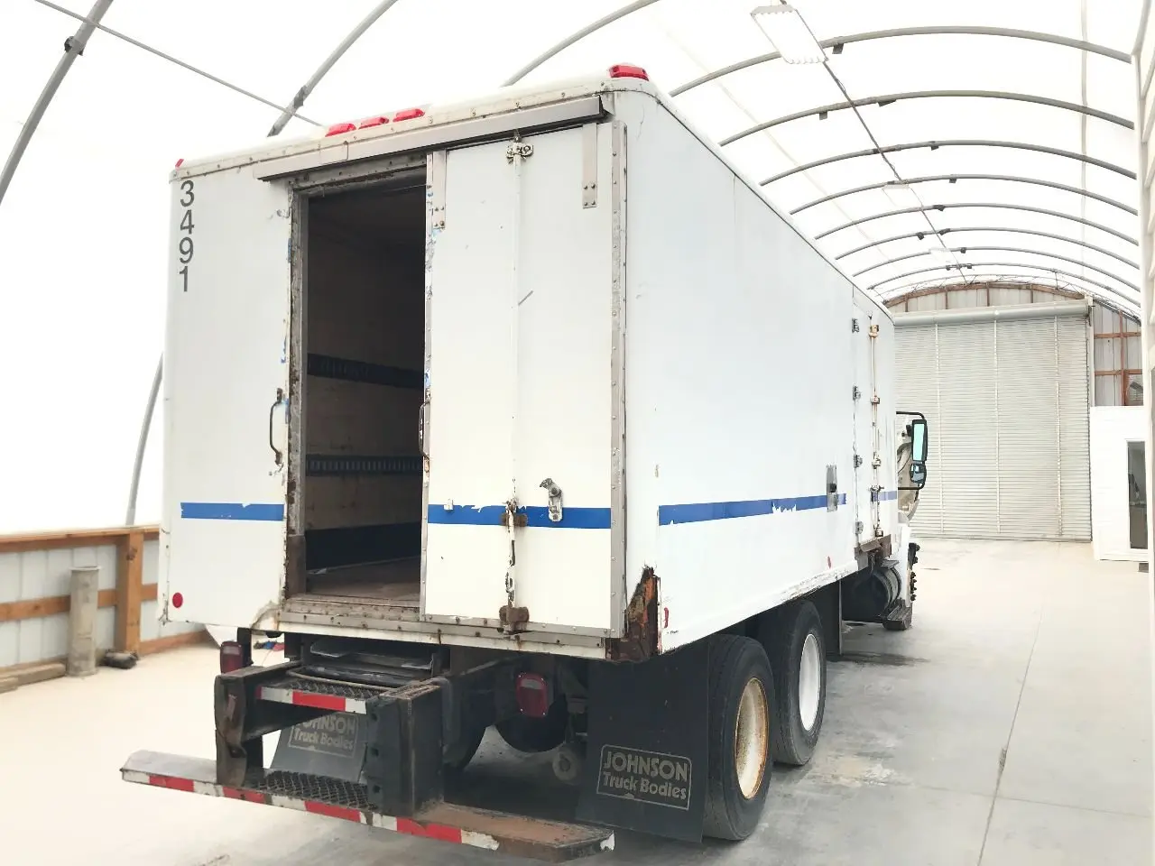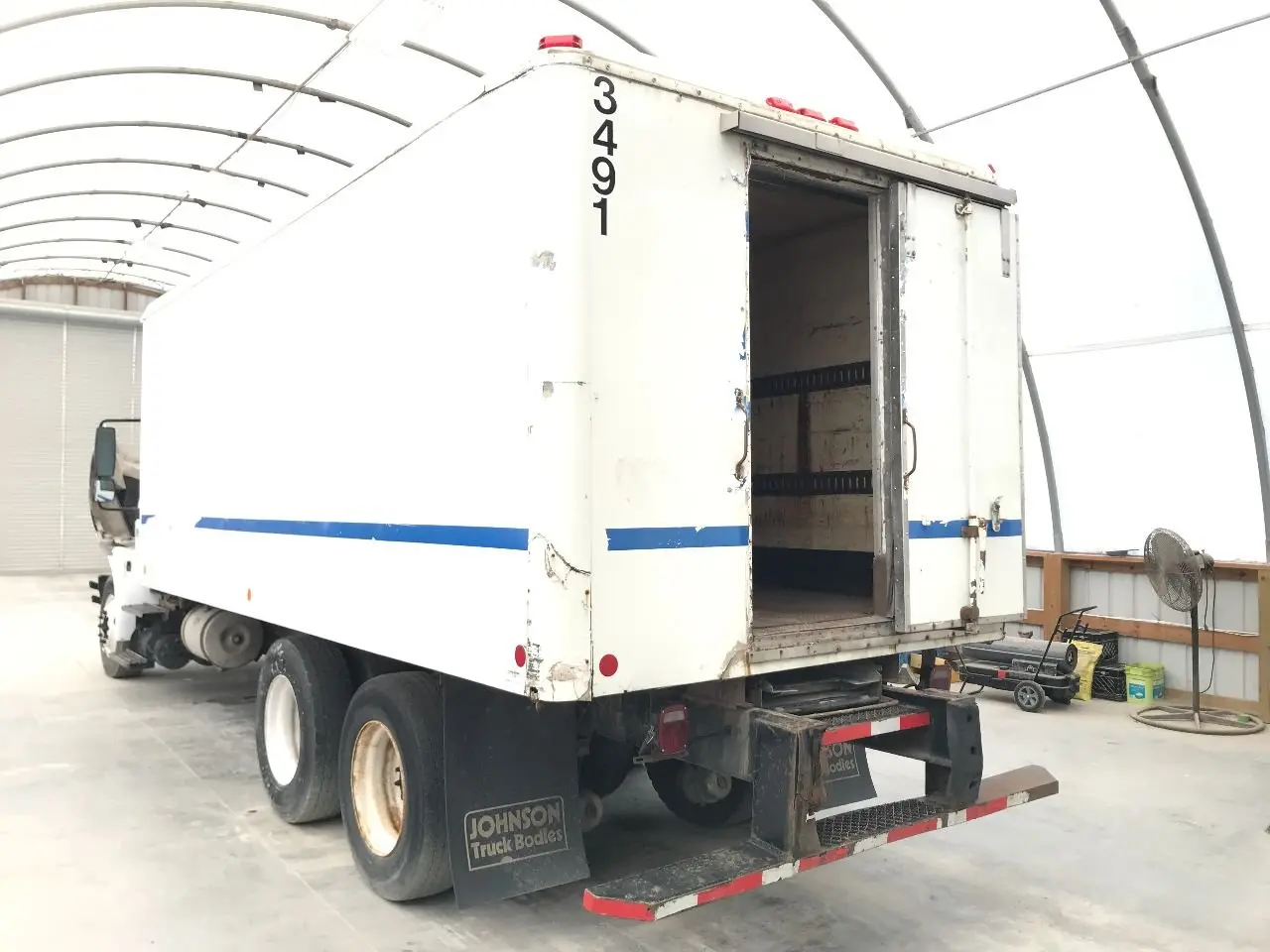 USED: USED 20' 9" X 98" INSIDE HEIGHT - 79.5", INSIDE WIDTH - 94", REAR DOOR HEIGHT - 71.5" WIDTH - 31.5", CASE FOR REEFER CRACKED, FRONT WALL CRACKED ALONG TOP, ROOF CAP CRACKED ALONG MULTIPLE SPOTS, BOTH REAR CORNERS CRACKED