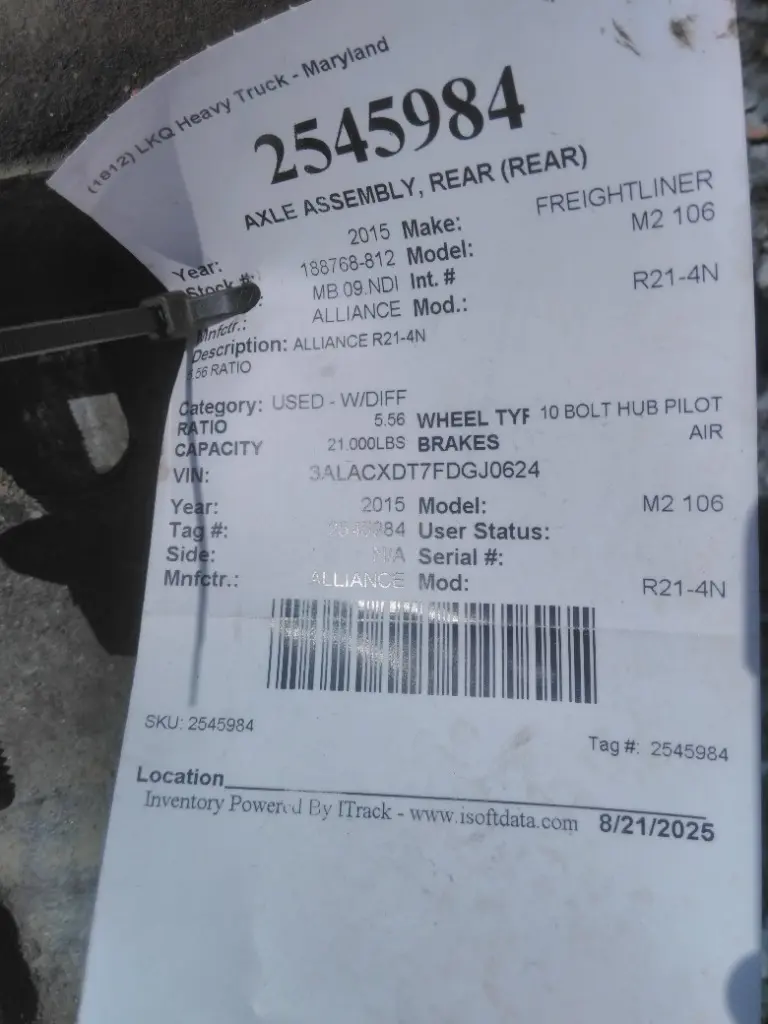 2015 ALLIANCE R21-4N AXLE ASSEMBLY, REAR (REAR)