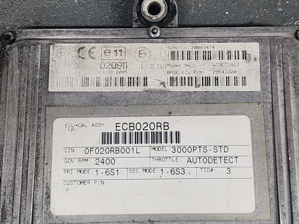 (TESTED w/WARRANTY) 2005 Allison 3000PTS-STD TCM Part # 29543300 For Sale, e11, 020911, 10R-020911, Model No. WT3ECU912, ECU+CAL ASSY: ECB020RB, CIN: 0F020RB001L, Model: 3000PTS-STD, GOV RPM: 2400, Throttle: AUTODETECT, PRI Mode: 1-6S1, SEC Mode: 1-6S3, TID#: 3, Serial # 20003474, Stock # 8599 | Tested & Inspected!