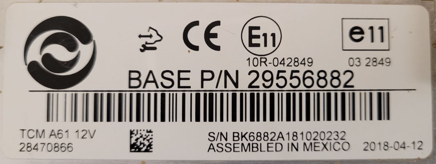 Used: Used Pull Out TCM for a 2019 Allison 1000HS Transmission S/N 6311630915. Make- Allison, P/N 29556882, S/N BK6882A181020232