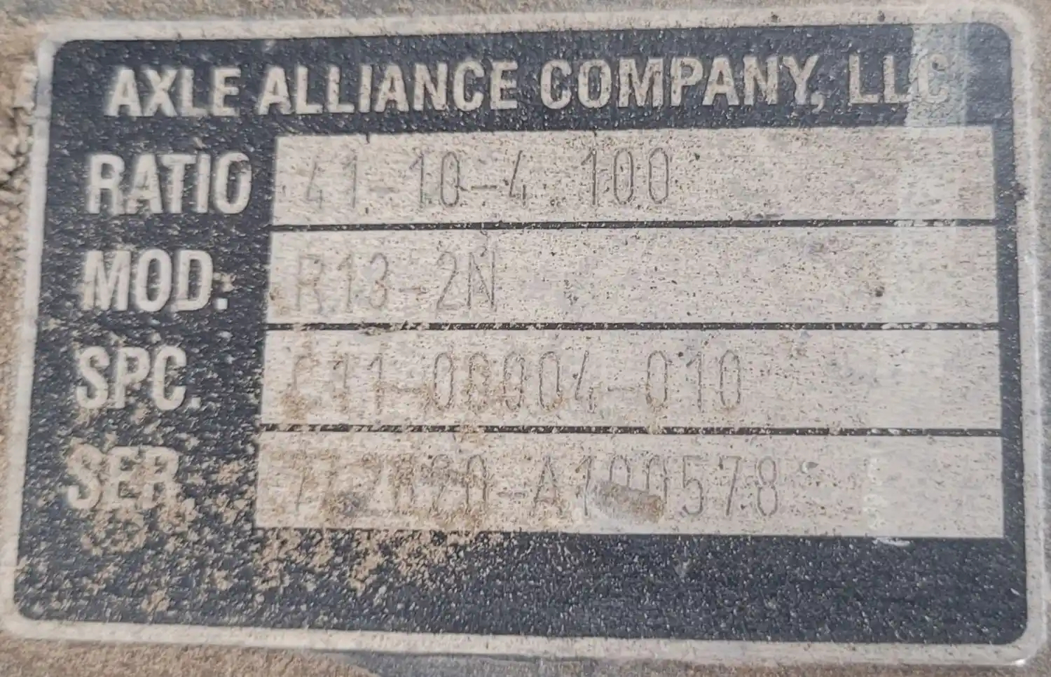 Used: Used Axle Alliance R13-2N, 4.10, S/N 742820-A100578. PRICE IS FOR DIFFERENTIAL ONLY