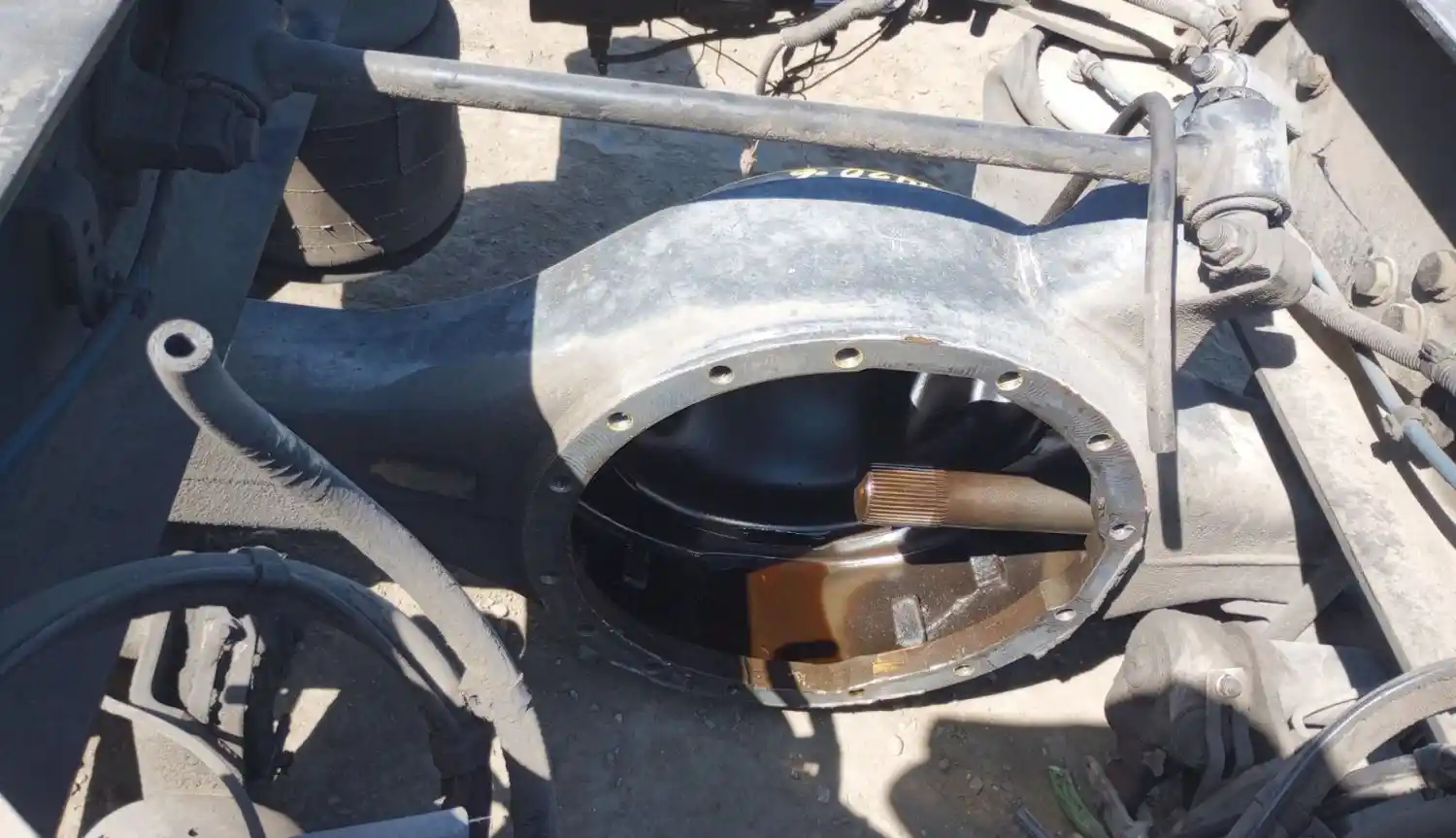 Used: Used Axle Alliance Rear Axle Housing, RT40-4N Rear, w/ Torque Rod Bracket, 10 Hole Pilot, Air Drum Brakes, ABS, 53.5" Inner Flange To Flange, STD Track. P/N QA6813504730 (Replaced By MBA 6813506203). Missing One Axle Shaft. Removed from 2015 Freightliner FAS II Airliner Suspension.