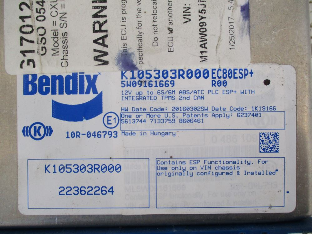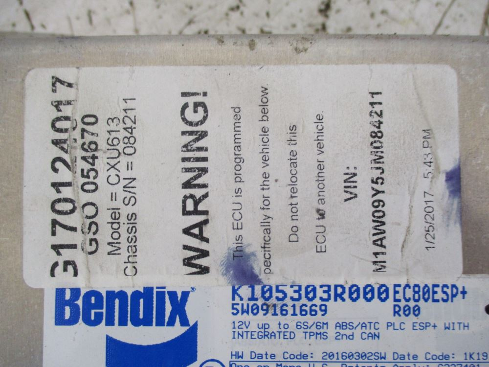 Used: Used USED BENDIX ABS CONTROL MODULE, P/N# K105303R000, REMOVED FROM 2018 MACK CXU613, GOOD CONDITION, SEE IN PICTURES.