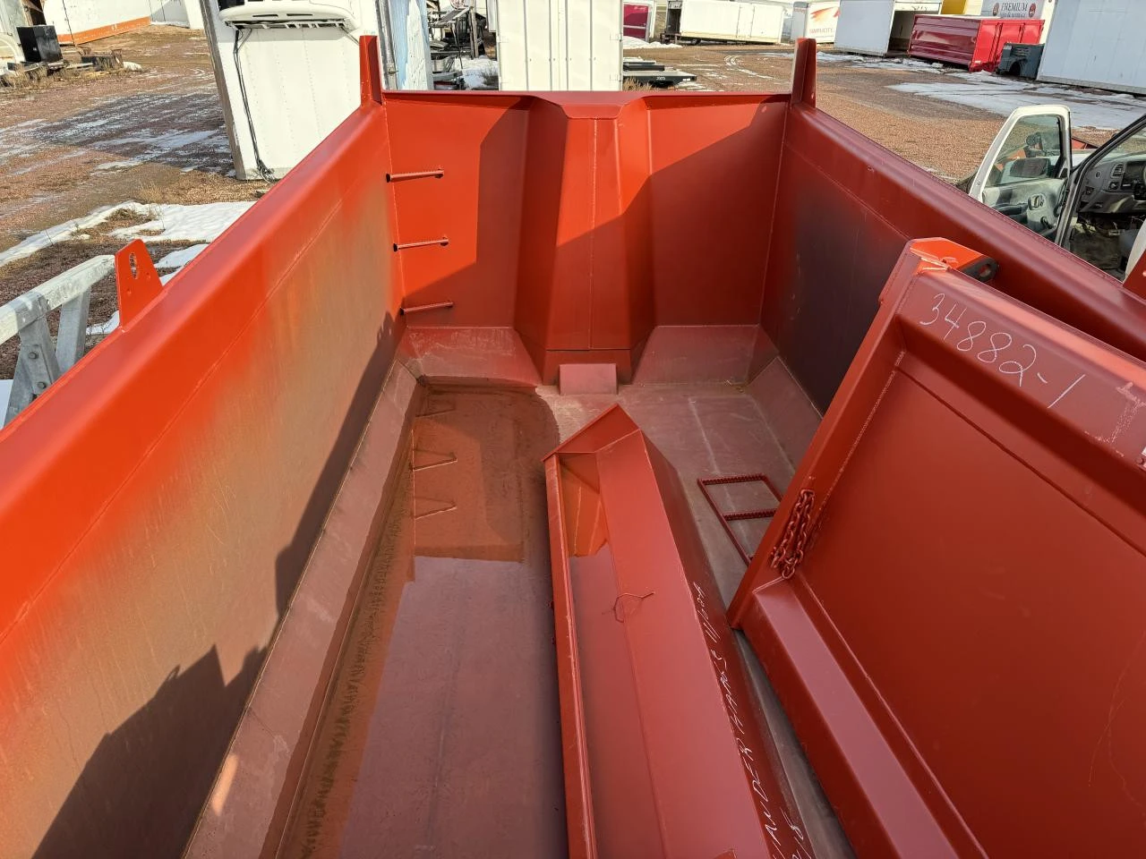 NEW: NEW 18 1/2' Bibeau BFL-S, 3/16" Hardox 450 floor, Sloped 60" - 48" 1/8" Hardox 500 sides, 54" sloped tailgate with alsphalt taper & air release, L.E.D. light kit, body is constructed with RHV option for slim hydraulic tank, tank is included, 18'" standard cab shield, trunnion mounted Binotto ANT cylinder 6.5-4-170, rear hinge, body prop, No hydraulic pump or controls. Serial # B34882-1