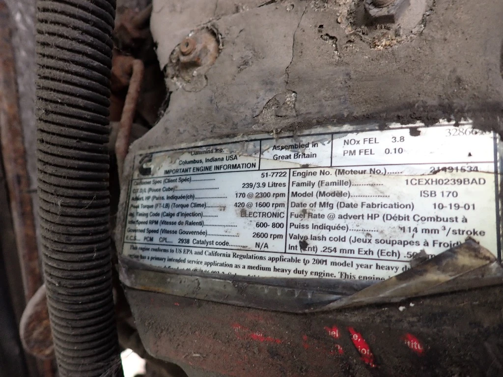 GOOD RUNNER: GOOD RUNNER 4 cylinder Diesel 3.9 liter.ISB170, CPL2938, 230,974 MILES, 22,597 HOURS, 8,009 IDLE HOURS