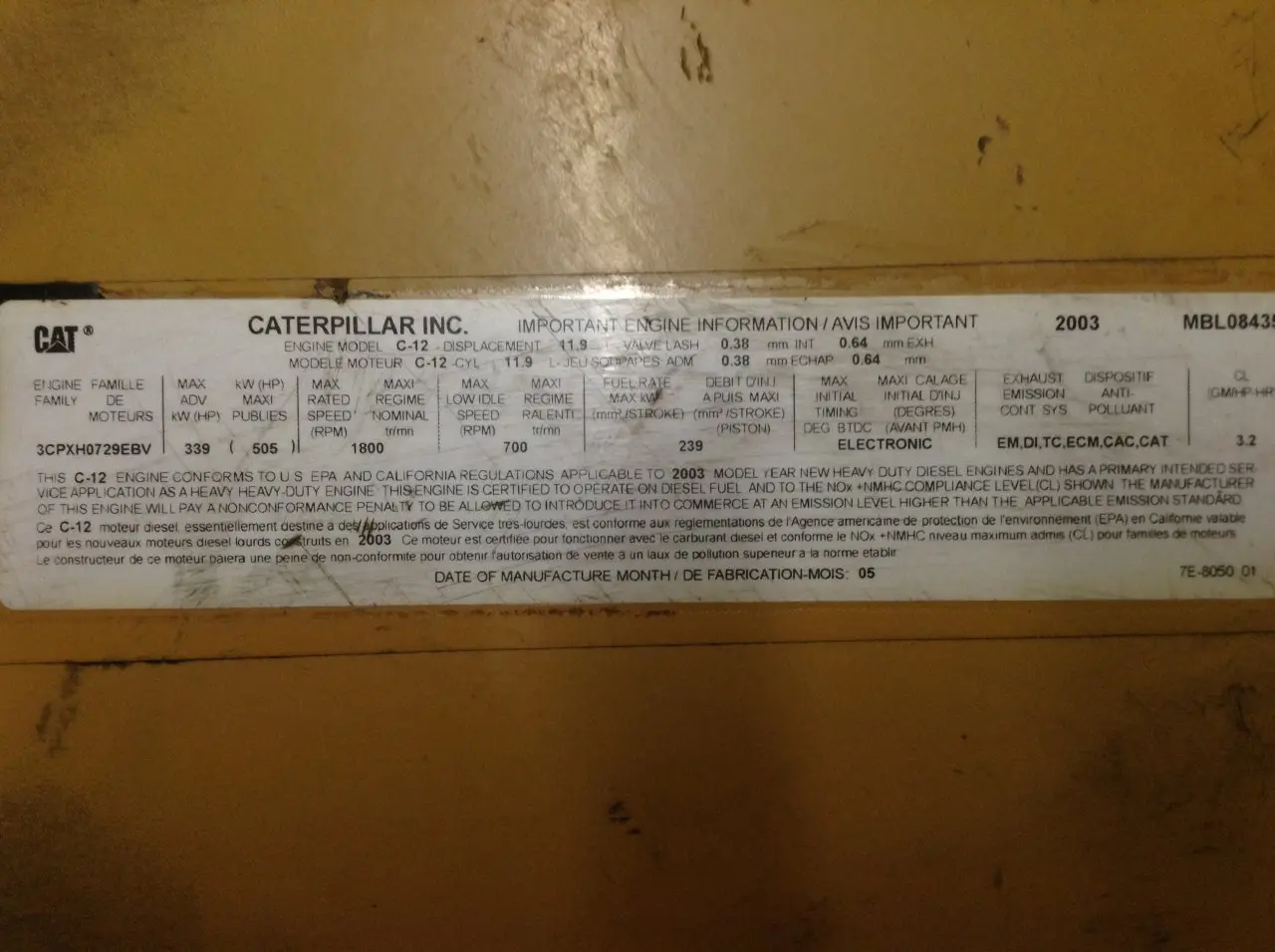 CAT C12 Engine Misc. Parts
