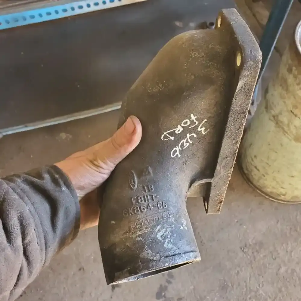 Cat 3406 air intake manifold elbow with a Ford application, part number E8HT-6K854-CB