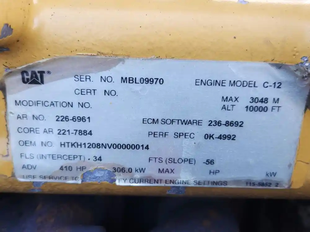 (Used) 2003 Caterpillar C12, ENGINE ASSEMBLY- Family Number: 3CPXH0729EBV, Displacement: 12.0L, Horsepower: 410, Serial Number: MBL09970, Ar. No./CPL: 226-5961, Part Number: HTKH1208NV00000014, Reference images for condition, For more information about this item, give us a call. We ship Worldwide! (CRG HEAVY TRUCK PARTS) 929 W PULASKI HWY ELKTON MD, 21921