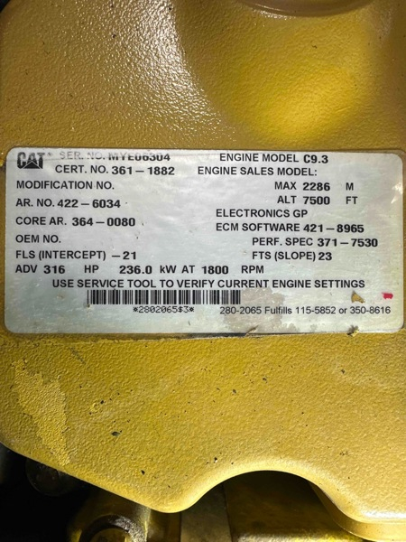 Used: Used Engine C9.3 GOOD TESTED EQUIPMENT ENGINE COMPLETE * EXCHANGE WITH 100 DAY WARRANTY PLUS FREIGHT AND $3,500.00 REFUNDABLE CORE DEPOSIT.