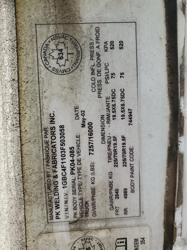 VIN #:1GBC4F1103F503058