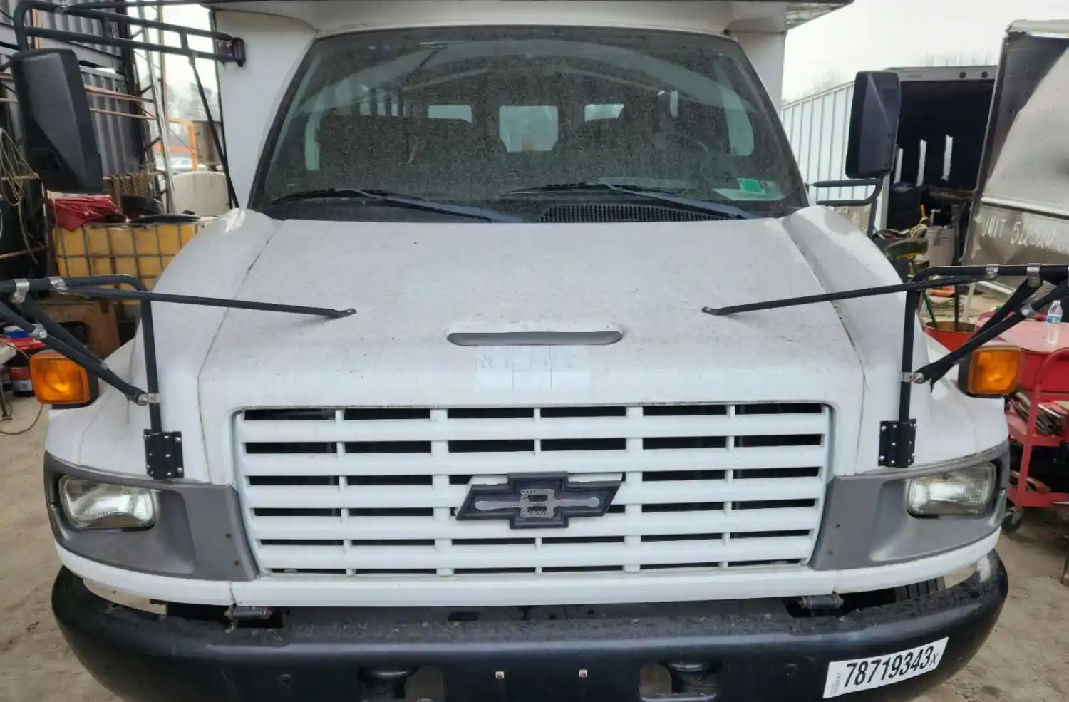 (Used) 2008 Chevrolet C4500, HOOD ASSEMBLY- Part Number: 25796427, 32Â, from cowl to grill, Color: White, Material: Fiberglass, Include front hinges, headlights and grill, Reference images for condensation, For more information about this item, give us a call. We ship Worldwide! (CRG HEAVY TRUCK PARTS) 929 W PULASKI HWY ELKTON, MD 21921