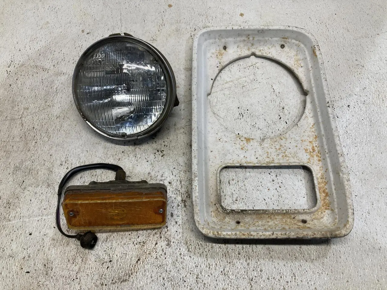 USED: USED LIGHT/BEZEL & TURN SIGNAL ASSEMBLY, TURN SIGNAL IS WEATHERED AND CRACKING
