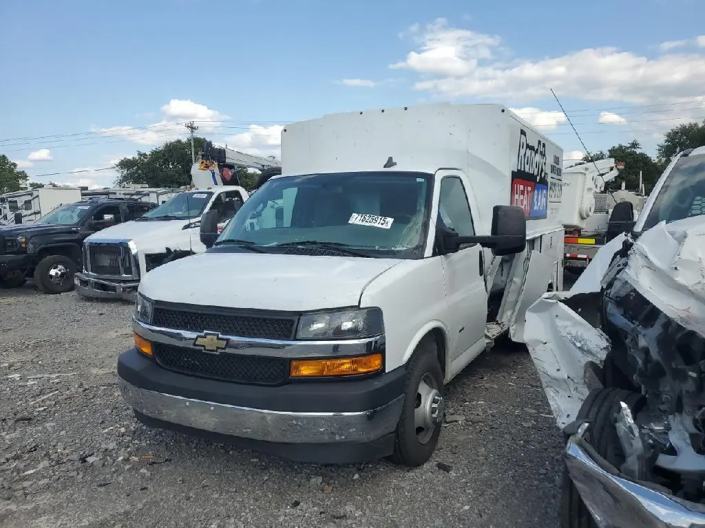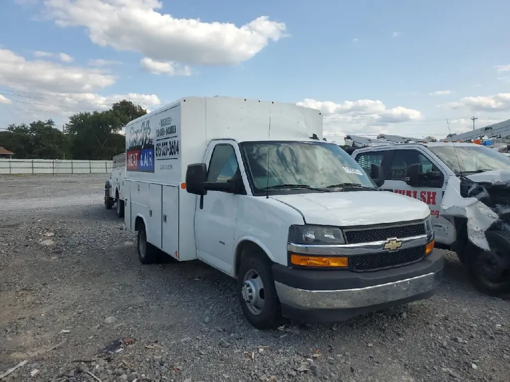 2021 CHEVROLET EPRESS 3500 CUTAWAY DUAL WHEEL KUV BODY , 6.6L V-8 GAS , 6 SPD AUTOMATIC TRANSMISSION , STABIL-TRAK TRACTION CONTROL , REAR VISION CAMERA , TILT WHEEL , 12,300 GVW , LOCKING REAR DIFFERENTIAL 3.73 RATIO , REMOTE KEYLESS ENTRY , POWER LOCKS , REBUILT TITLE , 69,779 MILES