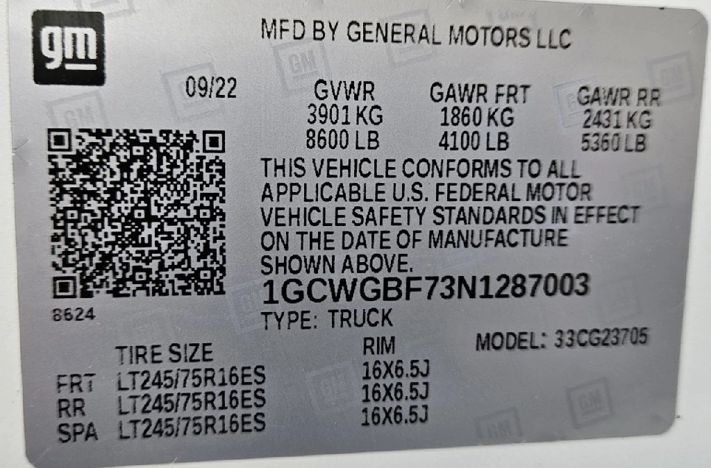 | VIN #: | 1GCWGBF73N1287003 |