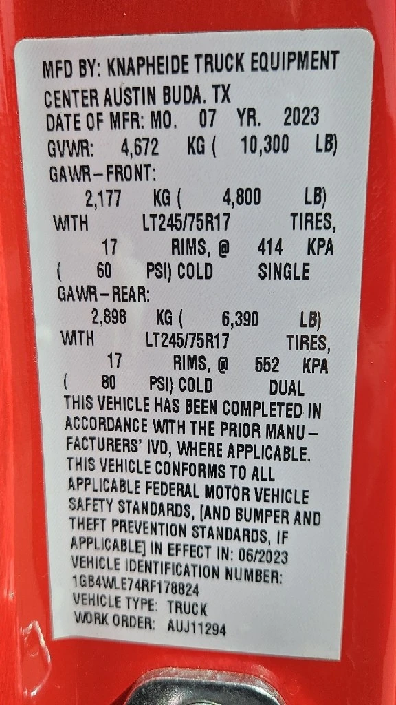 | VIN #: | 1GB4WLE74RF178824 |