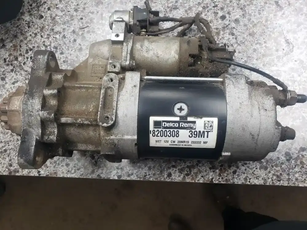 8200308 Delco Remy 39MT 12-volt heavy-duty starter--12 VOLT CW engines like Cummins, Detroit Diesel, and Caterpillar (CAT). Key features include an 11-tooth pinion, Over Crank Protection (OCP), soft-start technology for smoother engagement, and a rotatable flange for flexible installation, making it suitable for major truck brands like Freightliner, Kenworth, and Peterbilt.