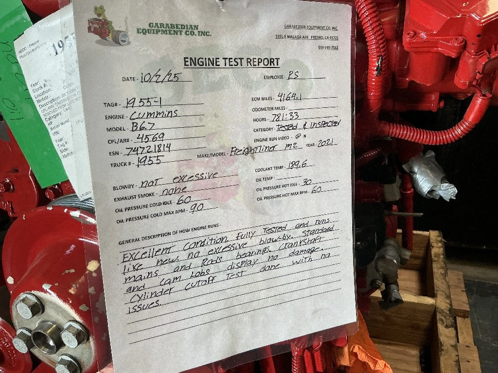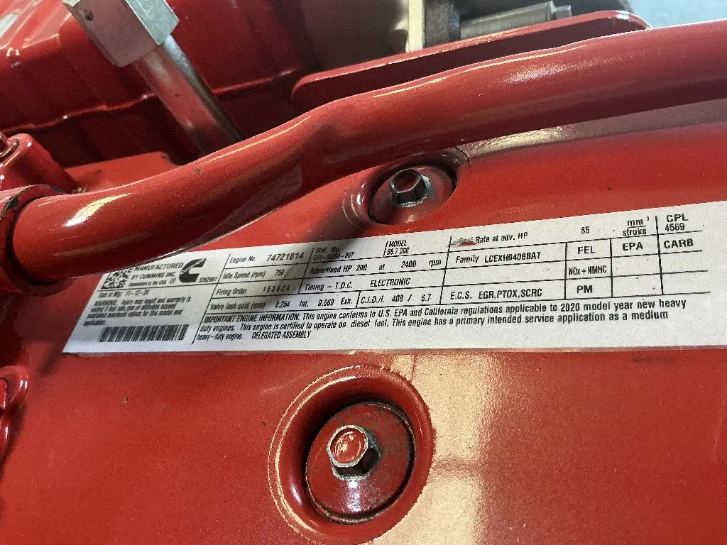 USED: USED B6.7 (ISB6.7) EPA 20, 200 HP, S/N 74721814, CPL-4569, CM2350 B121B, ONLY 4,151 MILES AND 746 HOURS. REMOVED FROM LATE MODEL WRECK! (Please see video of engine running and test report)