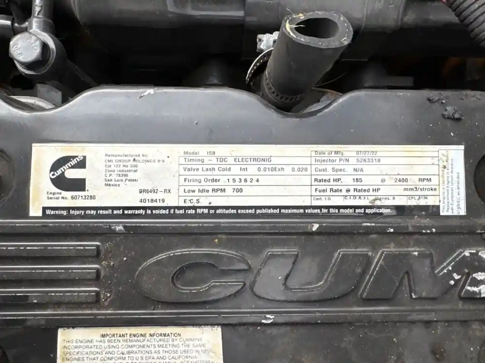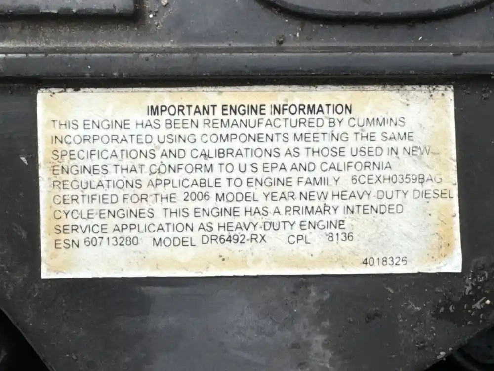 (Used) 2000 Cummins ISB 5.9L ENGINE ASSEMBLY- ( REMANUFACTURED 07/27/22 ) Family Number: 6CEXH0359BAG, Displacement: 5.9L Horsepower: 185, Ar.No./CPL: 8136, Serial Number: 60713280, Part Number: DR6492-RX, Reference images for condition, For more information about this item, give us a call. We ship Worldwide! (CRG HEAVY TRUCK PARTS) 929 W PULASKI HWY, ELKTON MD 21921