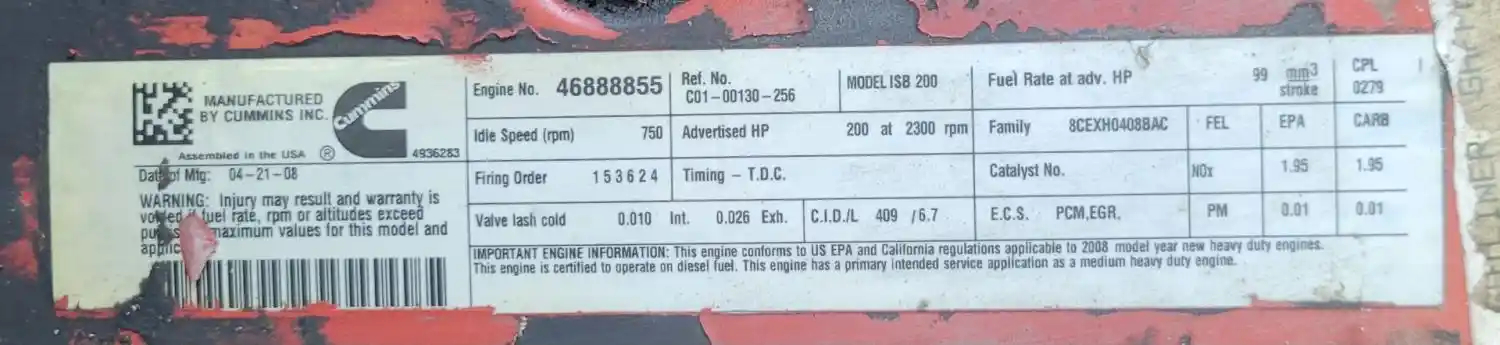 Used: Used ISB, 6.7L, CM2150; 200 HP; S/N 46888855; CPL 0279; DOM 2008