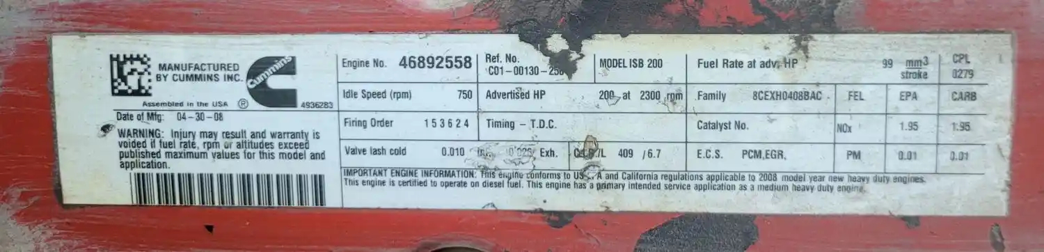 Used: Used ISB, 6.7L, CM2150; 200 HP; S/N 46892558; CPL 279; DOM 2008