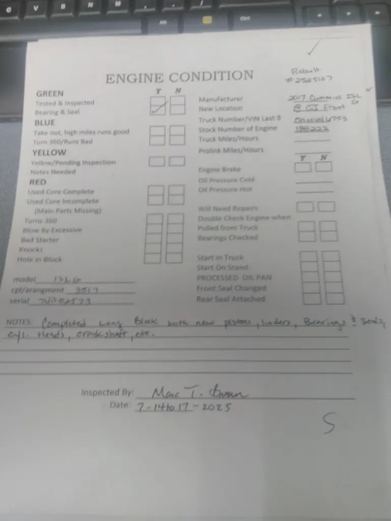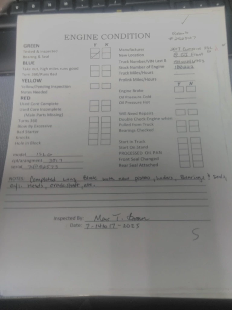 2017 CUMMINS ISLG 3517 ENGINE ASSEMBLY