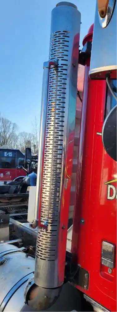 (Used) 2015 International 9900I, MUFFLER SHIELDS- Engine: Cummins ISX15, Side: Passenger Right Side, Material: Chrome and Steel, Dimensions: L=65", Reference images for condition, For more information about this item, give us a call. We ship Worldwide! (CRG HEAVY TRUCK PARTS) 929 W PULASKI HWY ELKTON, MD 21921