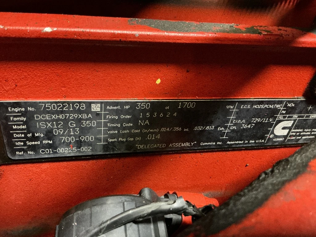 Used: Used ISX12G, 350 HP, S/N 75022198, CPL-3647, CM2180, Running engine, signs of possible water contamination. 160,850 Odometer Miles 166,099.2 ECM Miles 7,993 Engine Hours