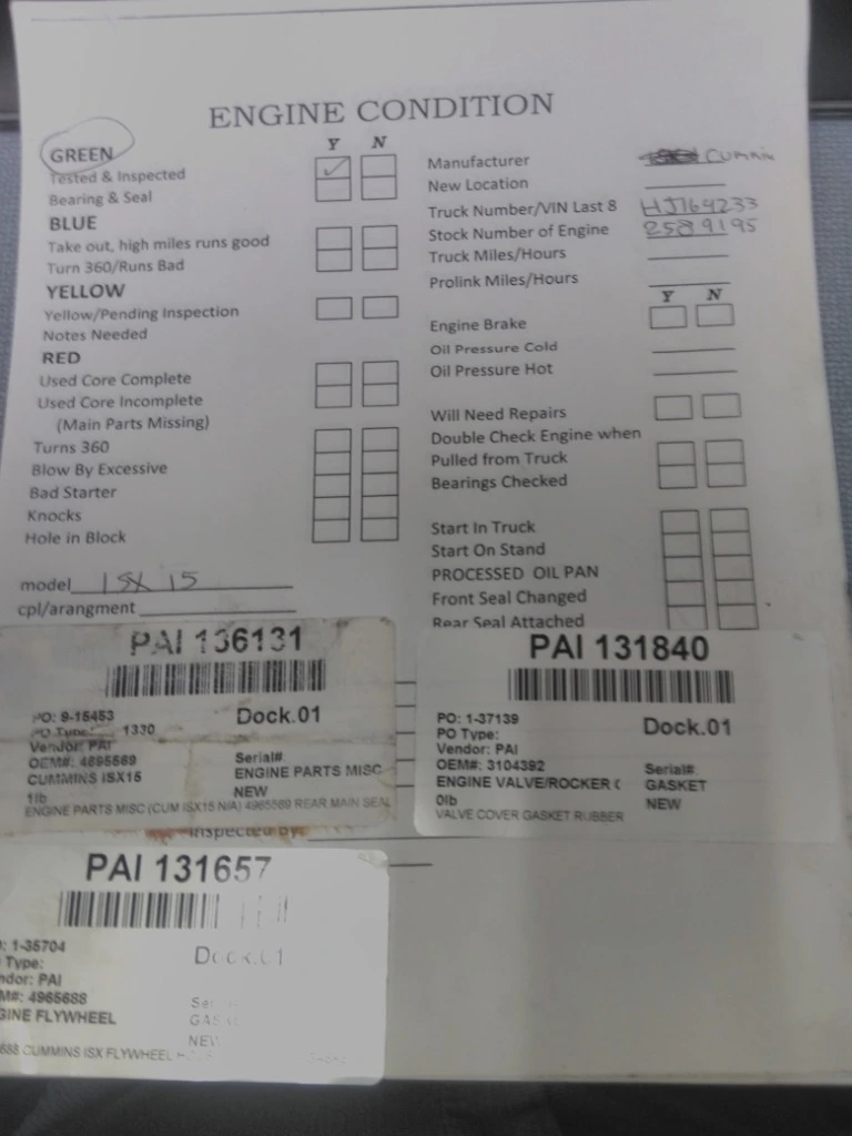 This item is from a CUMMINS ISX15 4586.
