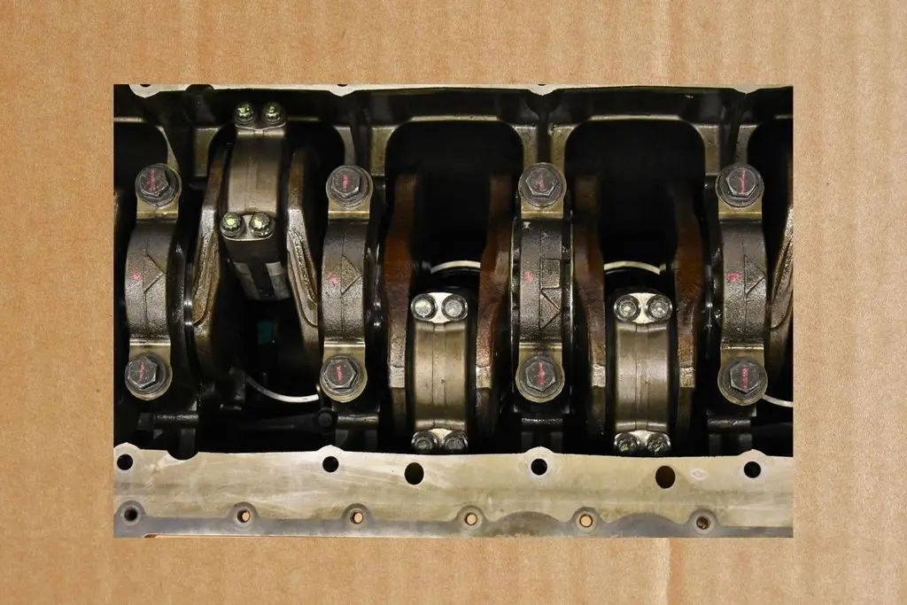 REMAN CRANKSHAFT, REMAN BLOCK, PISTONS, 6 PISTON NOZZLES, LINERS, RINGS.