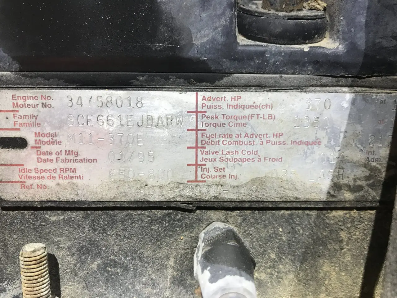 1995 CUMMINS M11 CELECT Engine Assembly