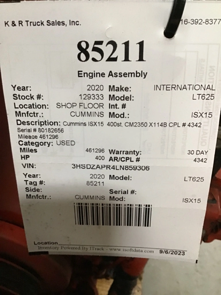 USED: USED Cummins X15 400st, CM2350 X114B CPL # 4342 Serial # 80182656