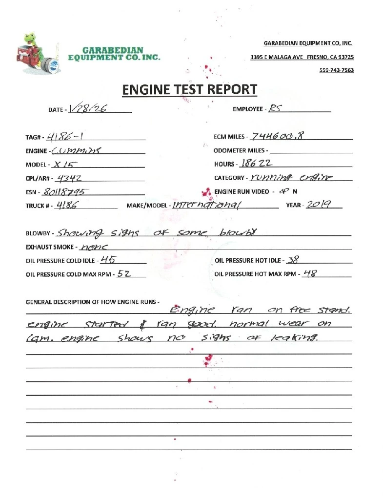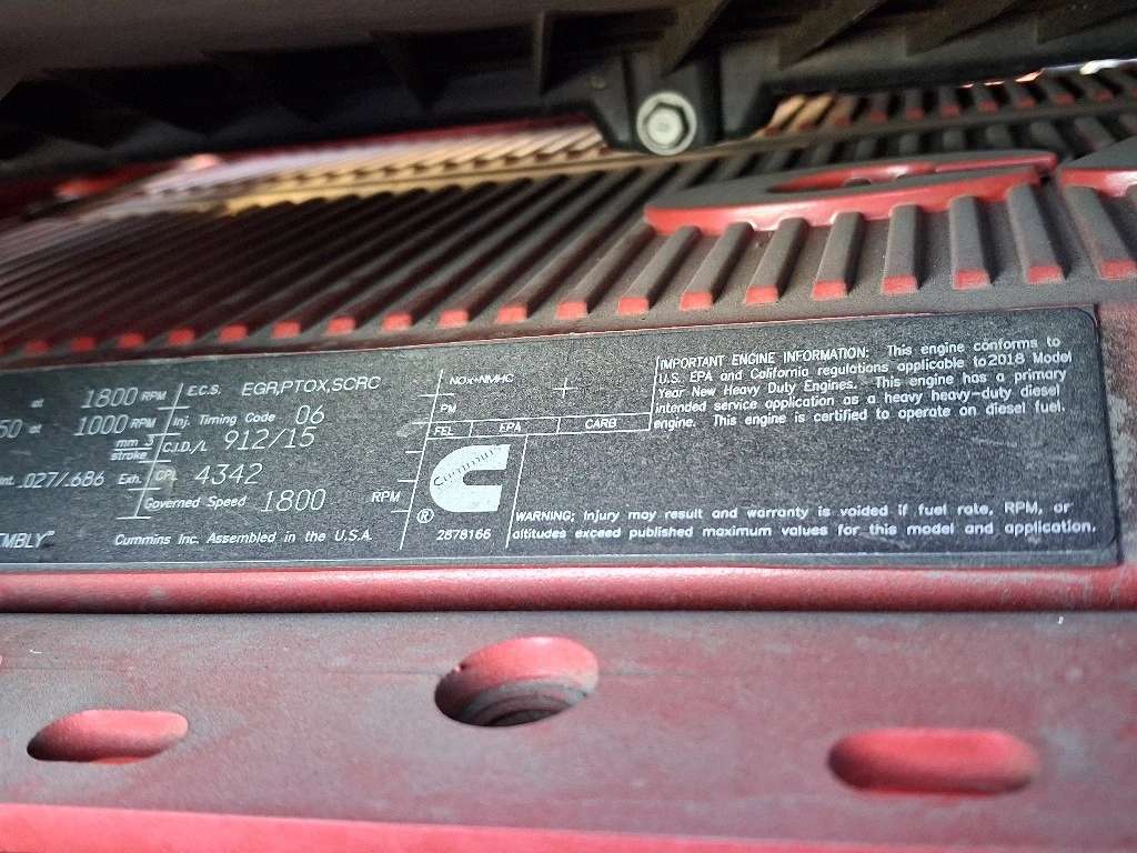 USED: USED Cummins X15, EPA18 450 HP, CPl-4342, CM2350 X114B, S/N-80118795, 744,600.8 ECM Miles, 18,622 ECM Hours.
