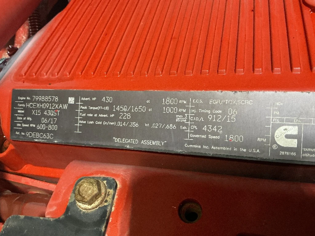 INSPECTED: INSPECTED Cummins X15 EPA17, 430HP, CM2350 X114B, CPL- 4342, S/N- 79988578; 369,351 miles. Engine complete and runs good. (Please see engine video and test report)