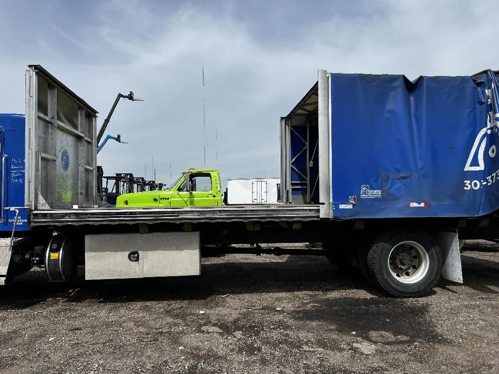 26'L 102"W 71"H Flatbed Tarp Van body, Aluminum Accordion Style Slide Body, Rear Tarp Door, Hardwood Flooring, Priced With New Tarp (not Installed), Tie Down Points. Call DTI Trucks for more information and a shipping quote.