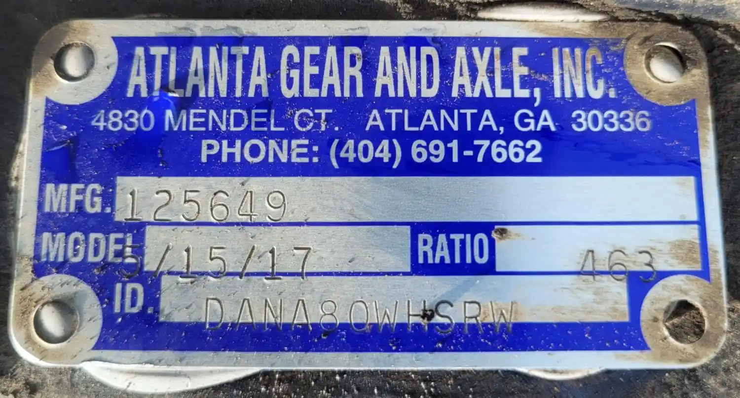 Used: Used Spicer 80 Rear, 4.63. Atlanta Gear Mfg # 125649, Date of Reman 2017. 10 Hole Pilot, Disc, Hydraulic. Differential and Axle Housing w/o Springs are sold as an assembly