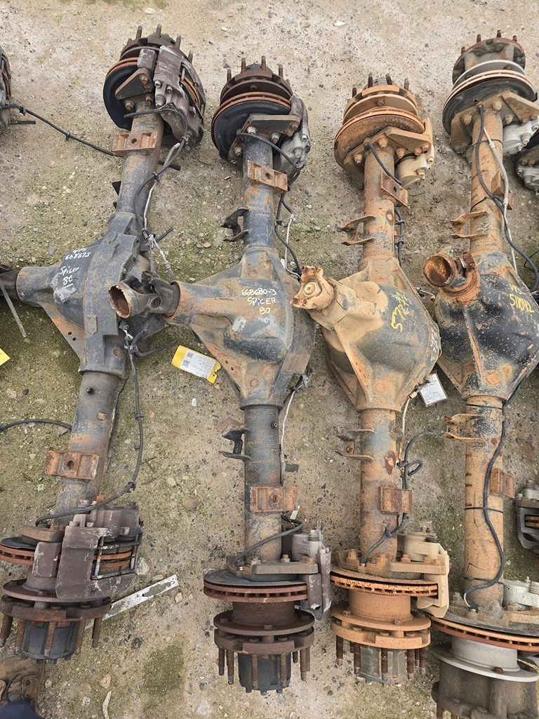 USED: USED Spicer 80, Need to Verify Ratio, 10 Hole Pilot, Hydraulic Disc Brakes. COMPLETE AXLE SOLD WITHOUT SPRINGS