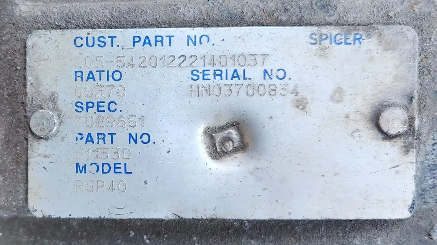 (Used) 2012 Kenworth T800, COMPLETE REAR DIFFERENTIAL HOUSING ONLY- Part Number: 511330, Serial Number: HN03700834, Custom Number: C05-542012221401037, Make: Spicer/Dana, Model: RSP40, Ratio: 3.70, Capacity: 20,000 Lbs, Hub Bolts: 10, Brake Type: Drum, For more information about this item, give us a call. We ship Worldwide! (CRG HEAVY TRUCK PARTS) 929 W PULASKI HWY, ELKTON, MD 21921