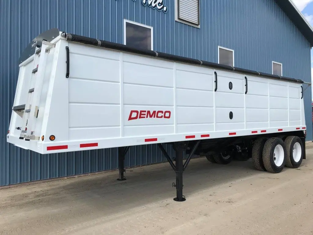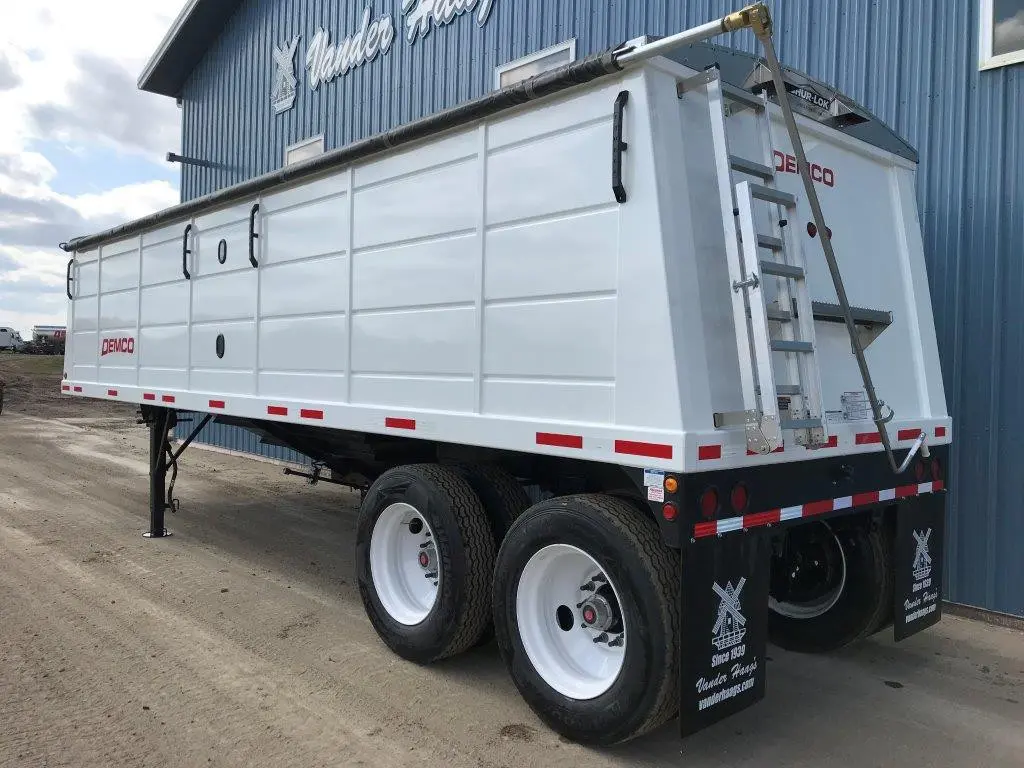 Hopper, Steel: Hopper, Steel (PRICE -FET INCLUDED) 2025 Demco 28'x96" Hopper Steel Grain Trailer - 66" Side Height, Tandem Axle, 11R 22.5 Tires, Steel Wheels, Single Hopper, Level Bushels (Approx) 715, Heaped Bushels (Approx) 765, Clearance 25", Pin 15", Holland Atlas 55 2-speed Drop Leg Landing Gear, Front & Rear Aluminum Ladder and Platform, Site Window, Manual Tarp, 54,000 GVW, Vented Hopper