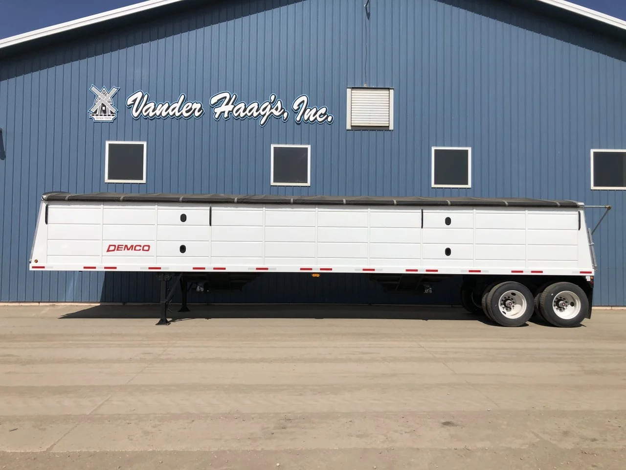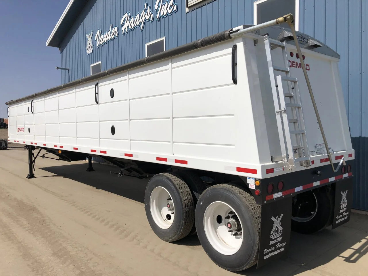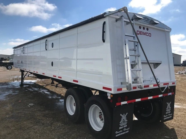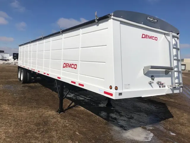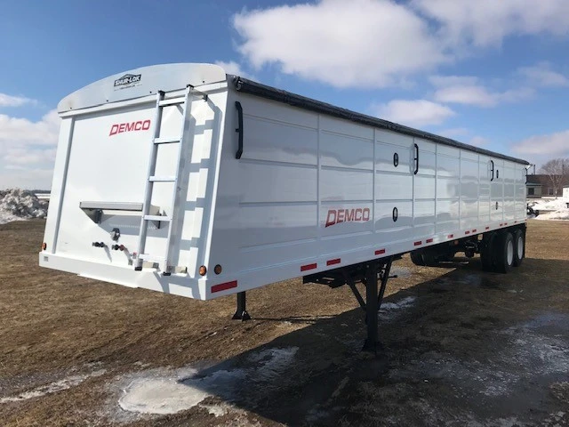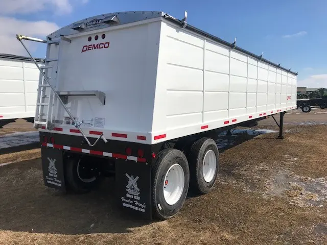 Hopper, Steel: Hopper, Steel (PRICE - FET INCLUDED) 2025 Demco 42'x96" Hopper Steel Grain Trailer - 66" Sides, Tandem Axle, Spring Ride Suspension, 11R 22.5 Tires, Steel Wheels, (2) Hoppers, Level Bushels (Approx) 1060, Heaped Bushels (Approx) 1135, 1,324 Cubic ft., Clearance 25", King Pin 24", Site Window, Manual Tarp, Vented, Front & Rear Ladder and Platform, Mudflaps, 68,000 GVW